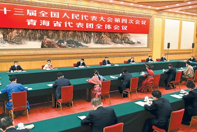 3月7日,中共中央总书记、国家主席、中央军委主席习近平参加十三届全国人大四次会议青海代表团的审议。新华社记者 李涛摄